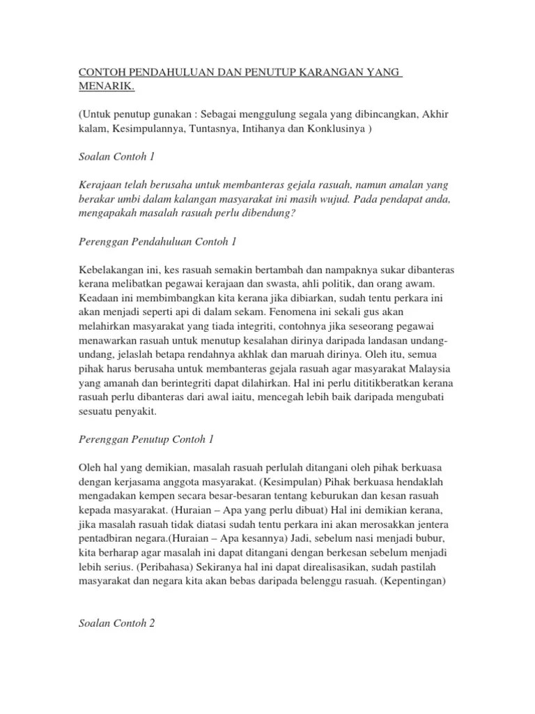 Apr 26, 2020 · contoh penulisan judul. Teknik penulisan pendahuluan karangan jenis fakta. Nov 24, 2021 · esai merupakan karangan yang singkat sehingga bisa habis dibaca dalam satu kali kesempatan. Fungsi judul antara lain sebagai identitas karangan, ringkasan isi dan menarik minat pembaca. Pendahuluan, seperti yang telah dijelaskan pada subbab sebelumnya, merupakan bagian penting dalam menulis paper. Biasanya pada paper kompetisi, juri akan lebih dulu membaca pendahuluan terutama bagian latar belakang dan tujuan. Berikut ini terdapat beberapa contoh essay yang dapat membuat kamu lebih mudah memahami cara membuat essay yang baik. Beberapa contoh isi artikel yang sering dibahas yaitu, tentang informasi sejarah, hasil penelitian, argumentasi / isu tertentu, petualangan seseorang dan tutorial atau bimbingan. Saya menyelesaikan studi sarjana di universitas brawijaya tahun 2016 dengan spesialisasi ilmu dan teknologi. Kebanyakan pelajar alpa bahawa pendahuluan dalam karangan merupakan titik awal dalam proses pemarkahan.